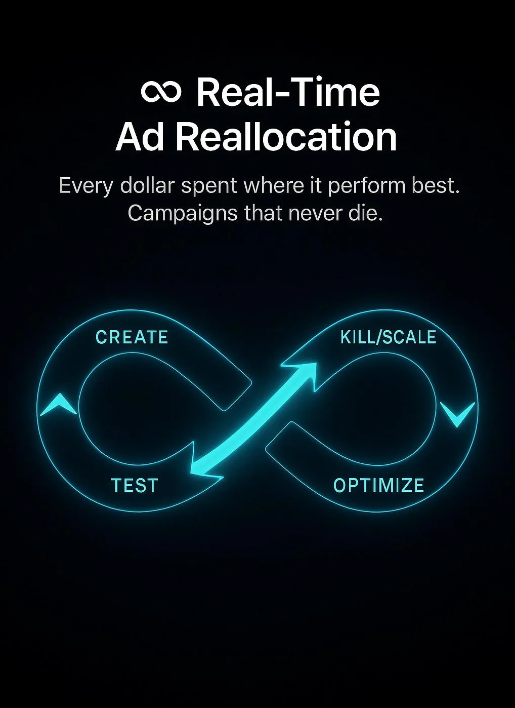 It learns, tests, scales, and optimizes them automatically —-across every major platform in real time.