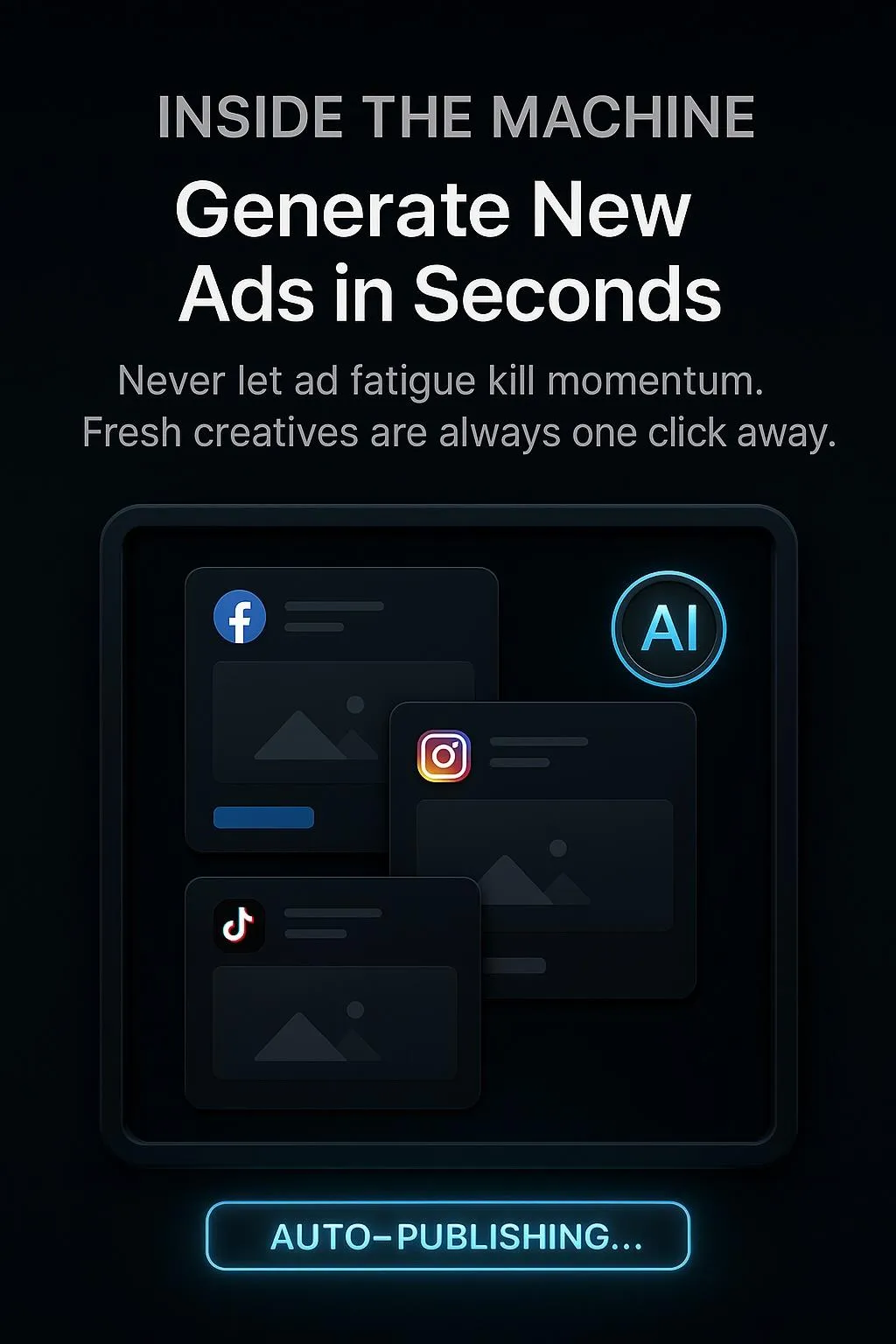 It creates fresh ad variations automatically, keeping fatigue from ever setting in.