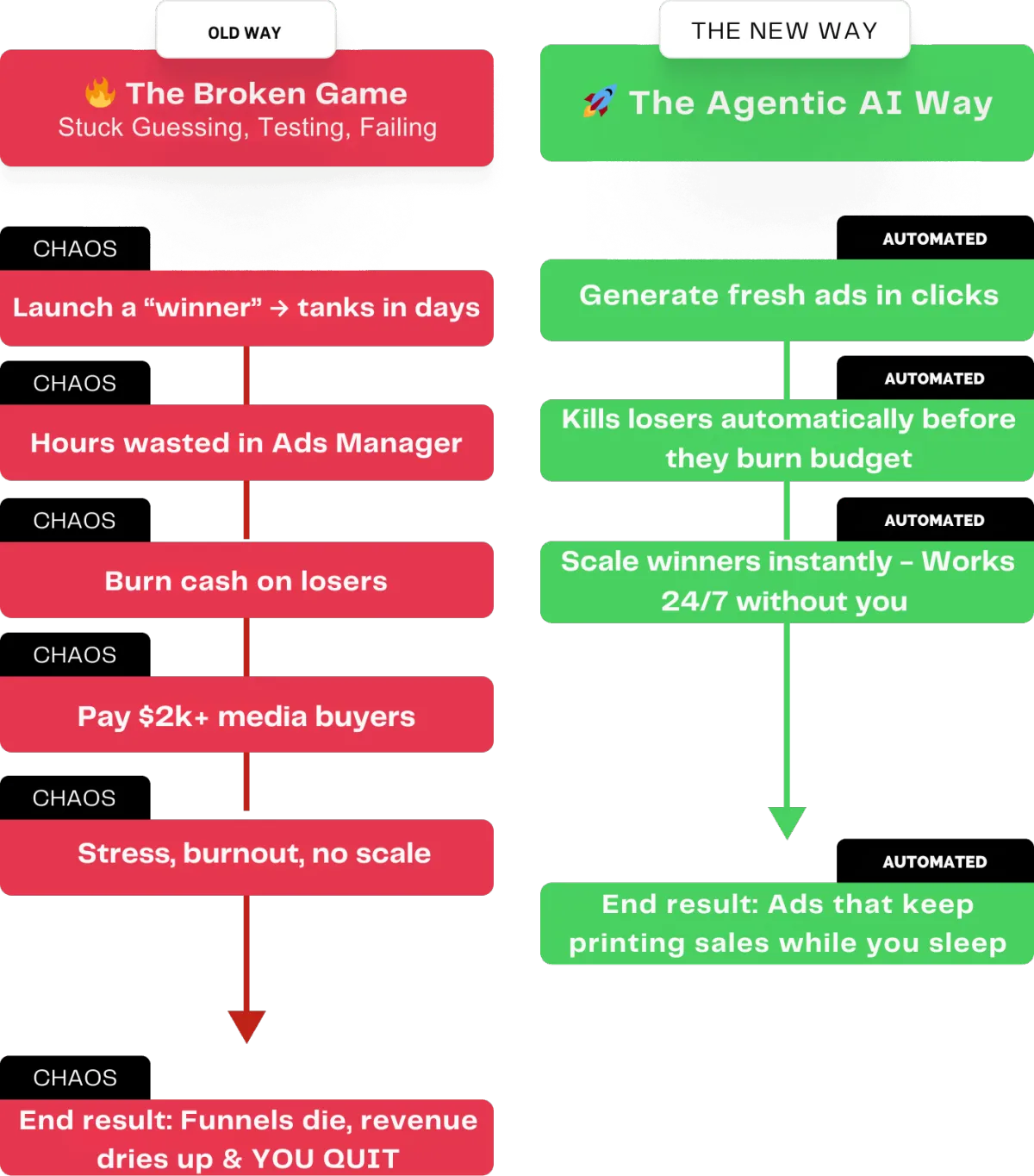 AI turns them into ads, keeps the best alive, and kills the rest - so you stay profitable while everyone else keeps guessing.