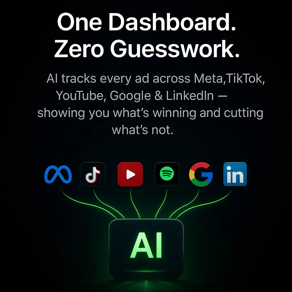 It analyzes performance across Meta, TikTok, YouTube, and more - from one dashboard.
